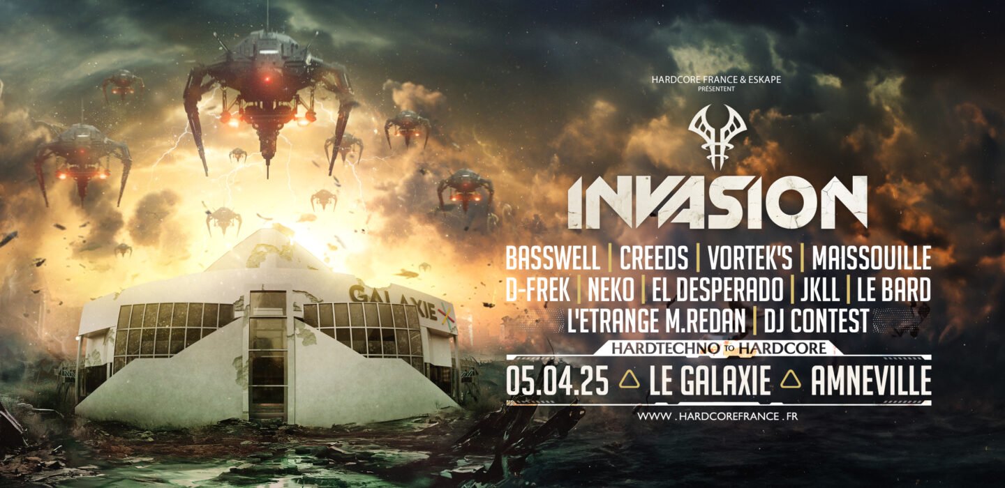 Le phénomène HARDCORE FRANCE & ESKAPE Festival débarque au Galaxie d’Amnéville (57) pour la toute première INVASION (Rave Edition) dans cette salle mythique ! 6500m², 6000 personnes attendues ! 100% indoor, 11H de son, Sound system XXL, light show, bar, VIP Boiler room, zone rencontres artistes, merchandising…